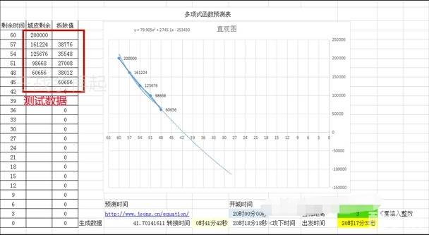 因为考虑到实战情况,一般攻城的特点是刚开始的三轮有主力跟着一起撕,或者是第三轮时主力重伤恢复过来撕,还有就是最后城皮即将清零时,会有法令让大家主力一起撕。因此,用线性函数来预测总感觉不是很恰当,所以选用了多项式函数来预测(可简单理解为一元二次函数),当然这个函数相对线性更复杂,考虑求城皮清零时间都破费脑汁,最后用了网页公式来计算。但相信这个版本的公式应该更贴近实际。