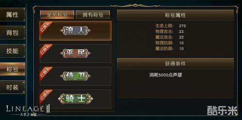 所有的称号都有着不同的获得条件,例如爵位称号,就需要消耗一定量的声望提升爵位方可获得。