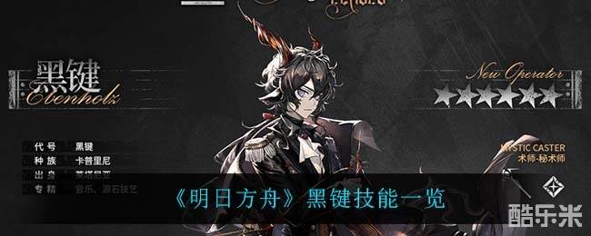 明日方舟黑键技能是什么?明日方舟即将上线六星术士黑键。很多小伙伴都很想知道黑键的技能是什么,今天小编给大家带来了《明日方舟》黑键技能一览。感兴趣的小伙伴一起来看看吧,希望可以帮助到大家。