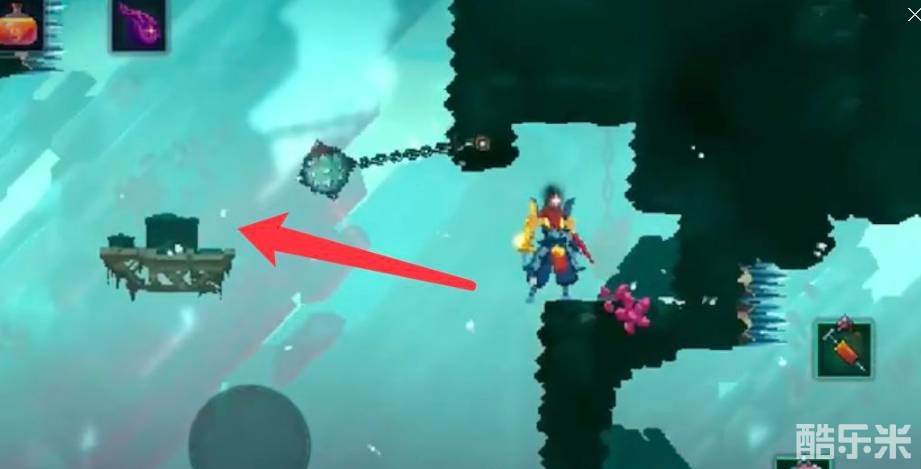 1、首先来到地图“山洞”处,然后从“守护者的居所”入口左侧平台的缺口处跳下,之后使用飞头将后面存在的大门机关打开。