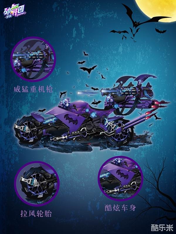 本期上新的双人坐骑【暗黑骑士·紫】,狂拽酷炫的摩托机车火热来袭!有型拉风的流线型车身设计搭配神秘暗黑的骷髅车头,尽显个性霸气;重工机械配件与旋风齿轮,新潮又前卫。双人坐骑暗黑骑士·紫可以在【服饰工坊】染色为双人坐骑暗黑骑士·黛/桃,染色后的暗黑骑士色泽质感满分!双人坐骑暗黑骑士·紫可进化为魔都骑士·紫/黛/桃,进化后的暗黑骑士更加激情炫酷、重工潮流。