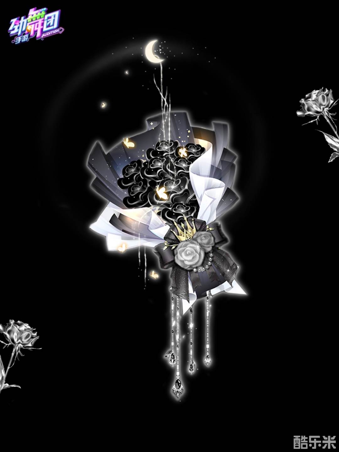 全新饰品墨染繁花整体浪漫奢华,魅力无限。月光皎洁,流光倾泻而下,珠链钻石伴随着点点星光闪烁,梦幻耀眼、雅致迷人。蝴蝶于黑玫瑰间翩翩起舞,美如画般,花束寓意着独一无二与温柔真心。来AU世界,携一束墨染繁花,赠予心爱的TA吧!