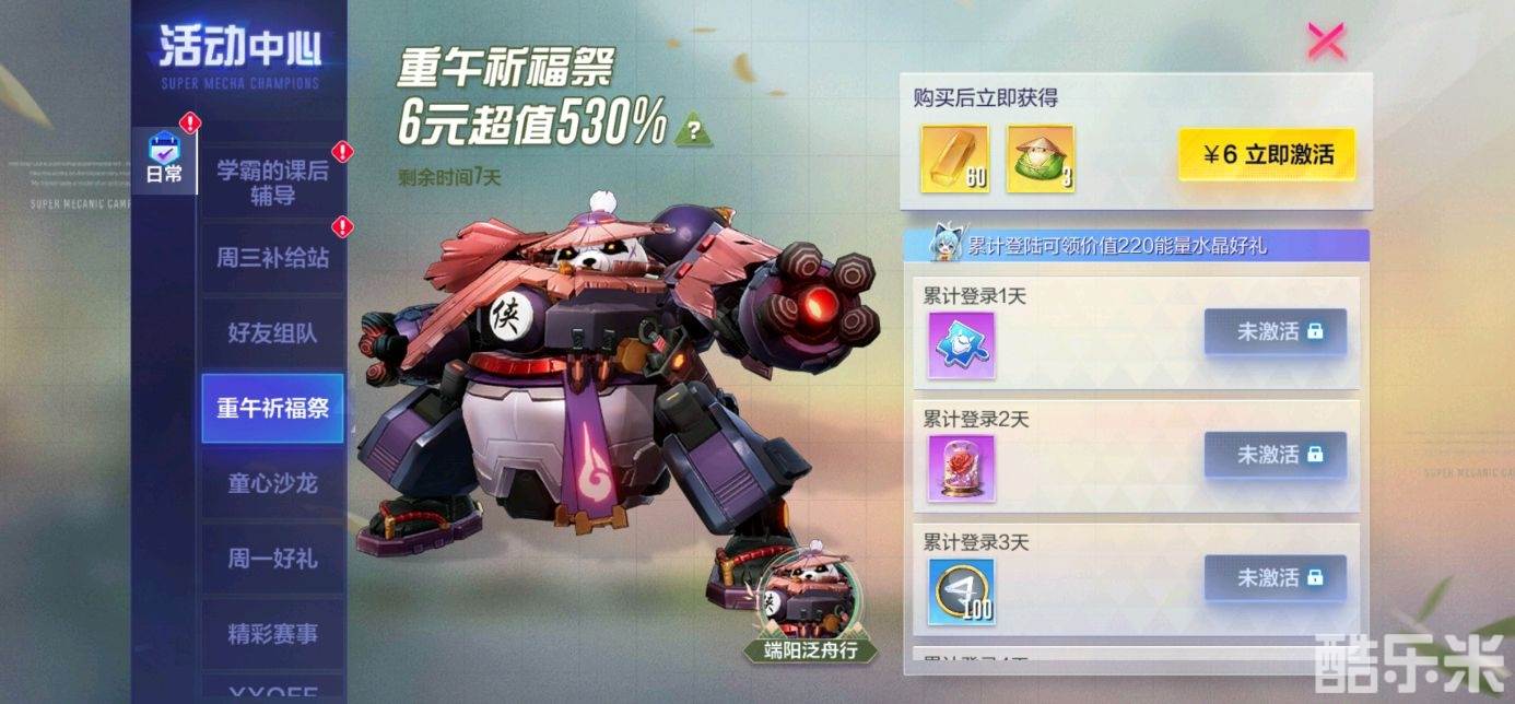 “‘粽’夏之时”活动开启!活动时间内完成局内任务领多样好礼,最高可获得端阳泛舟行奖池专属奖券--小粽客 ;