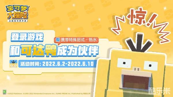 可达鸭这段时间可谓是当之无愧的“顶流”宝可梦,抢不到玩具不要紧,《宝可梦大探险》免费送!6月2日至6月10日活动期间,只需探险家们登录游戏,就能把人气明星可达鸭带回家!值得一提的是,这次的可达鸭自带特殊招式·热水,战力极高,一定能成为探险家队伍里的中流砥柱!