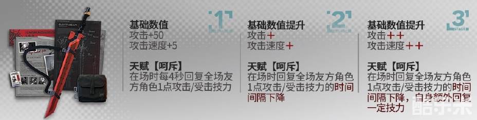 在场时回复全场友方角色1点攻击/受击技力的时间间隔下降,自身额外回复一定技力