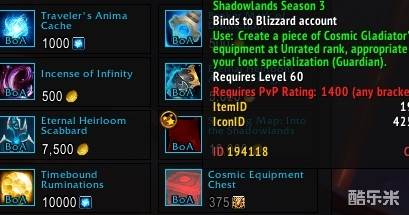 宇宙装备箱:售价375征服点,包含一件PVP第三赛季装备