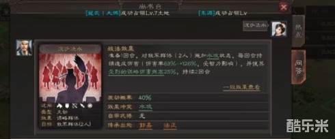 风助火势(周瑜、黄盖):45%瞬发法攻单体。适合周瑜、陆逊、吕蒙、徐庶等。