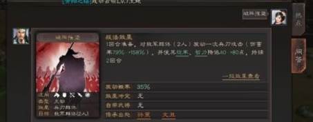 破阵摧坚(孙策、文丑):35%读条物攻2人+降双抗。实用性甚至不如四星技能,伤害、几率、读条都限制了它的发挥。