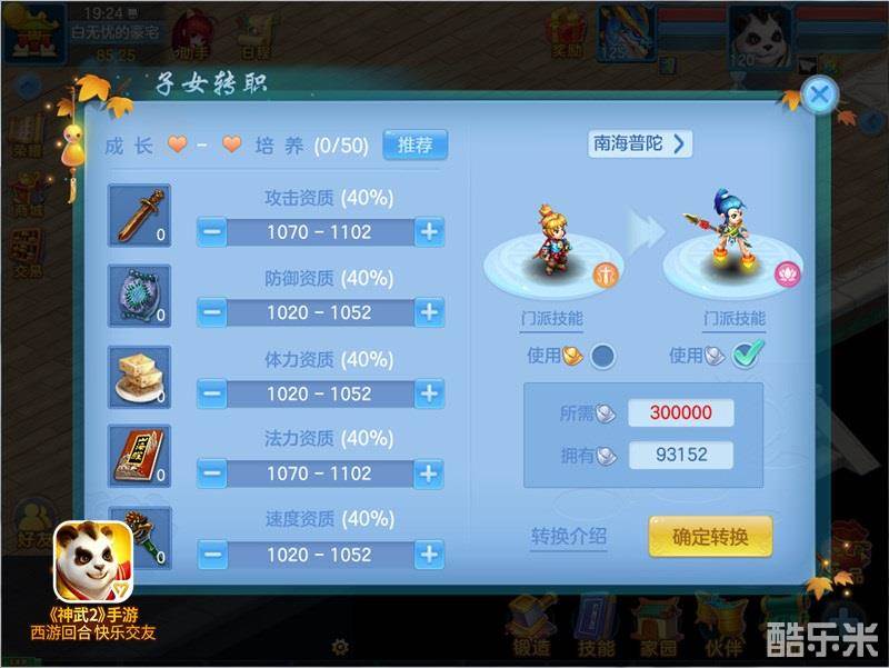 对成年子女培养不满意?想要让自己的子女拜入其他门派?《神武2》手游子女转职玩法解决你所有烦恼。只需在家中与成年子女对话,即可进入转职界面,花费一定数量的金币或银币便可进行转职了。转职后,原子女的宠物技能、子女神功、装饰和装备会保留,资质也将根据培养计划重新生成;转入非同种族门派时会转换造型及染色,此外,子女出生时指定造型的花费由1200金币调整为700金币,贴心改动助你养育最完美子女。