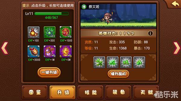 升级道具划分:升级道具品质主要分为:白、绿、蓝、紫,不同品质所带来的经验值也有所不同。