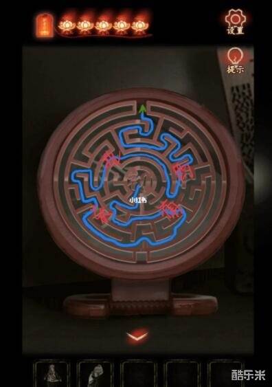床头得到【鸡头人偶】床头柜下层得到【猴头人偶】桌上画册最后一页得到【窗花】对床头柜上胶水使用得到【有点粘的窗花】贴到镜子上,根据迷宫路线顺序如图得知“南东北西”打开抽屉得到【龙头人偶】【短磁铁】