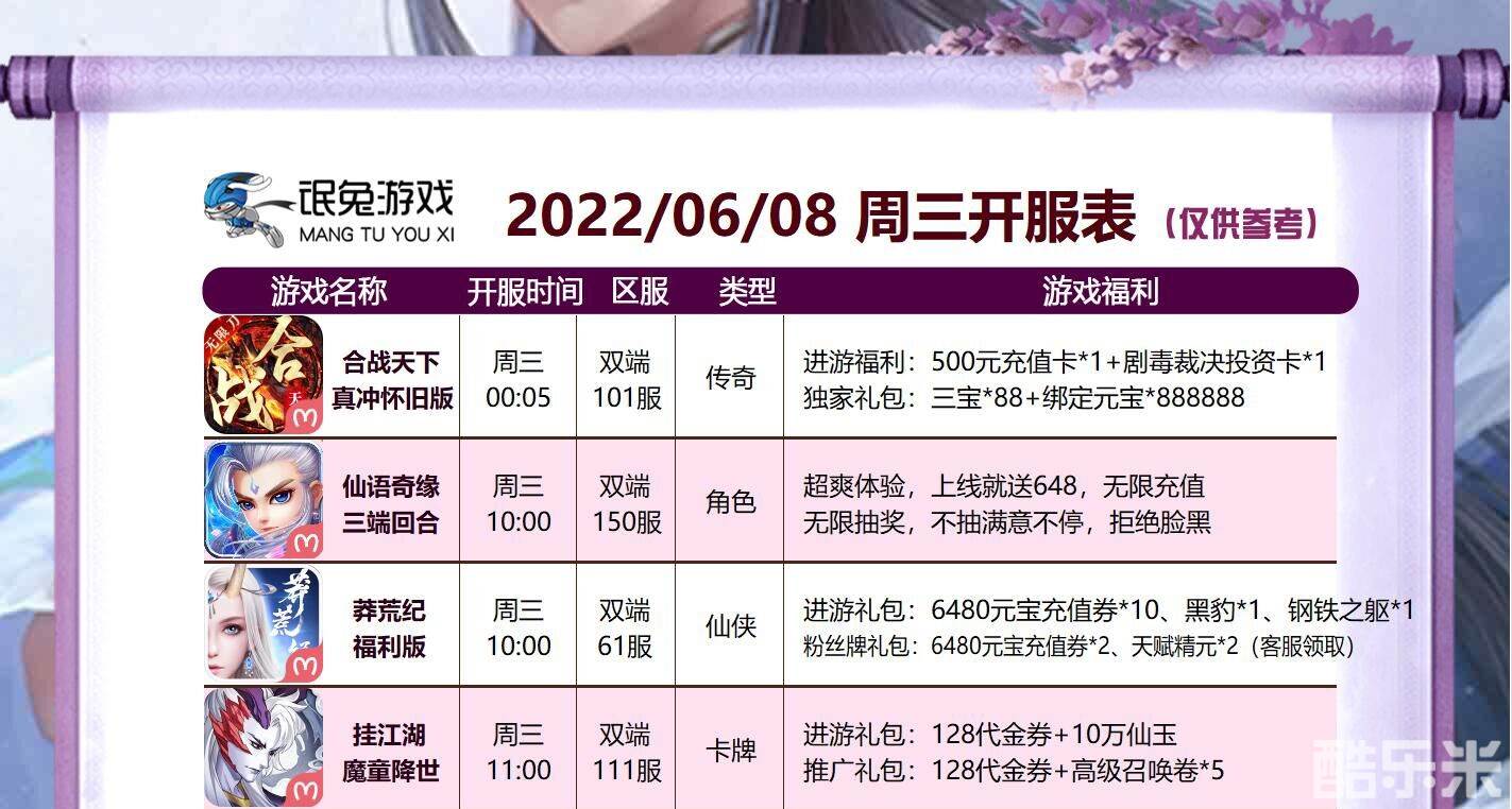 | 莽荒纪-福利版 | 双端61区( 苹果- 安卓) | 2022-06-08 10:00:00 |