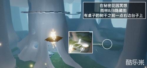 4、「在秘密花园里冥想」在雨林8/8隐藏图内,内有桌子的树干右边石头上的石碑前光圈处打坐并留言