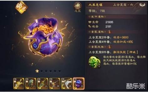 凑齐六件宝物后,激发“神威”技能,将增加有效伤害、攻速