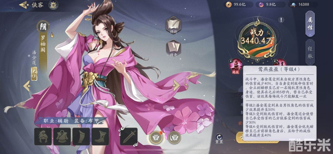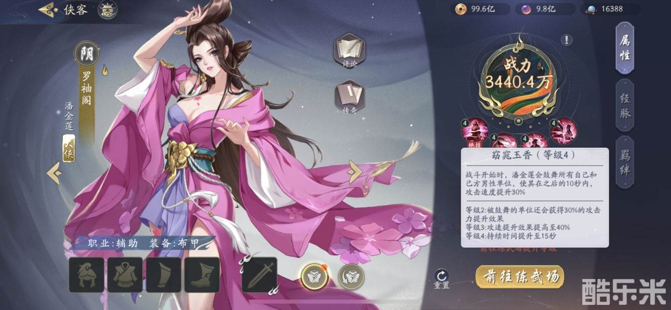 潘金莲同样也不需要高练度即可上场,让我们来看一看潘金莲在此文中作为辅助作用的两大技能。