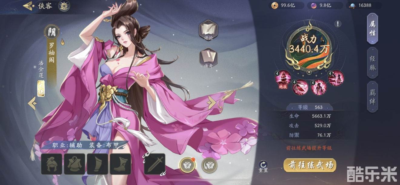 金一潘金莲,没有给经脉和秘籍,装备无,练武场等级必须给。