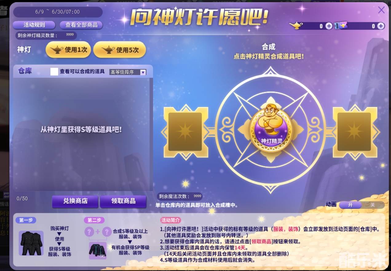 活动规则:活动中获得的标有等级的道具(服装,装饰)会立即发放到活动界面的[仓库]中。