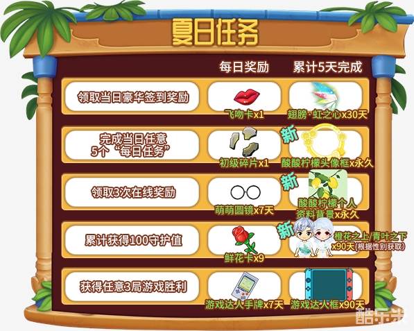 活动期间,完成夏日任务,领取特别奖励!当同一个任务累计5天都完成时,我们还会按照派对的规定,给予您更加丰厚的奖赏!