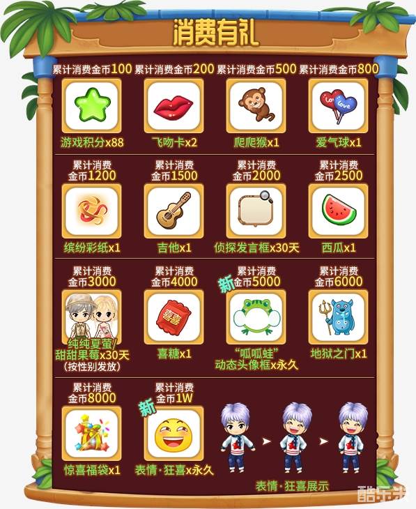 活动期间,根据您消费金币的数量,获得不同奖励!