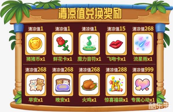 2、道具的金币价值1:1兑换为清凉值;