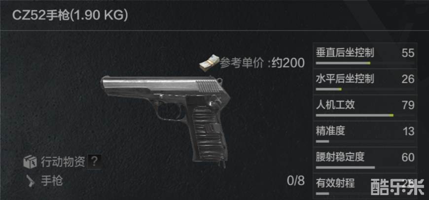 CZ52是新增武器中唯一的手枪,与T54一样使用7.62x25毫米口径弹药,两者的基础属性相差无几。