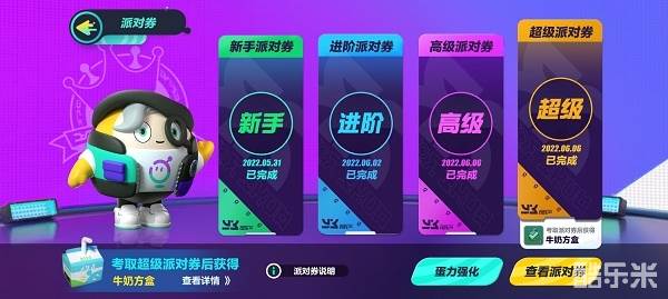 1、牛奶方盒的获取途径也还是比较显眼的,那就是在游戏的派对券系统(下图左上角)中。