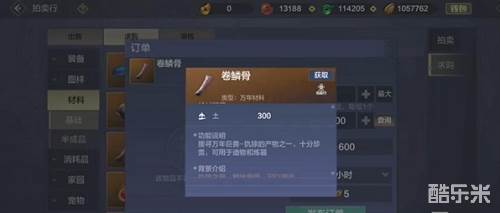 1、卷鳞骨的获得方法也非常的简单粗暴,打败巨兽、拍卖行和探索世界。