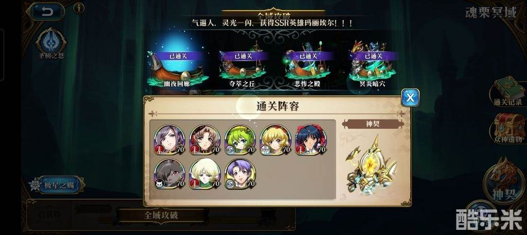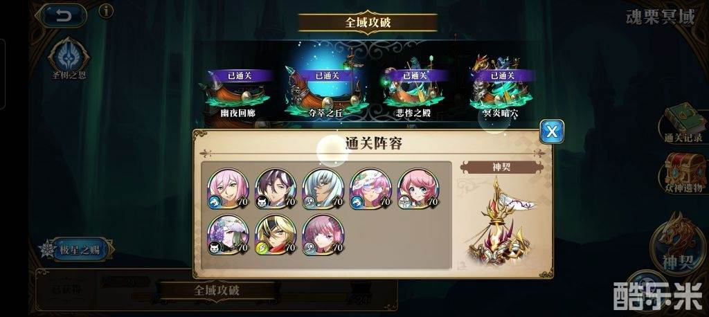 关卡需要注意的就是,一阶段刺客小兵的暴击容易废时钟,我带的巴德尔,开局rush两个尸魔,磨死刺客,转阶段时,让除了奶t另外3个人去一人杀一个boss分身抗一次秒杀,抗过了后面慢慢磨死boss就行,练度不够的注意二阶段boss小技能可以秒人