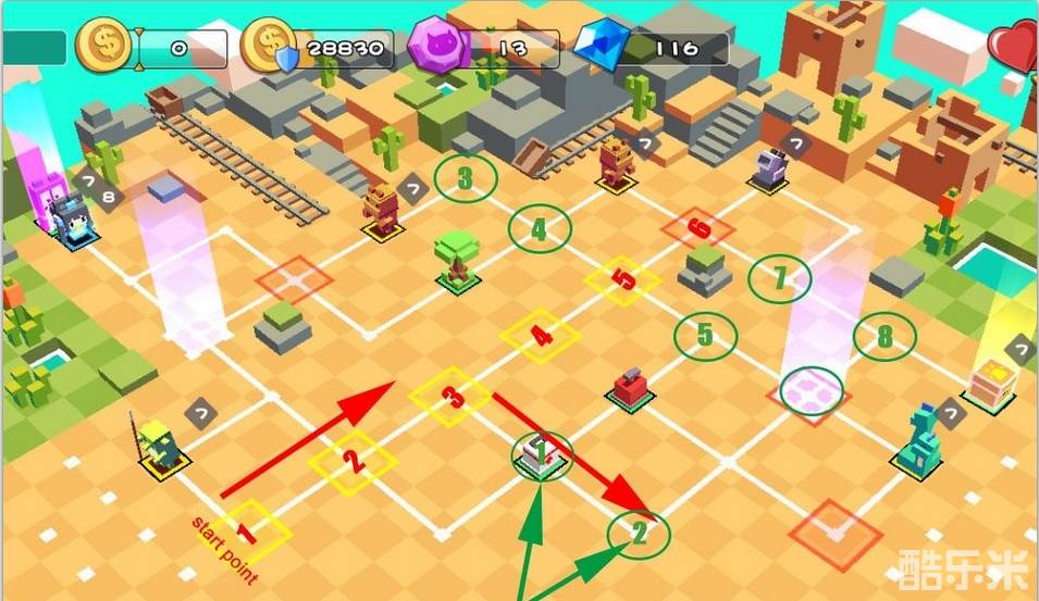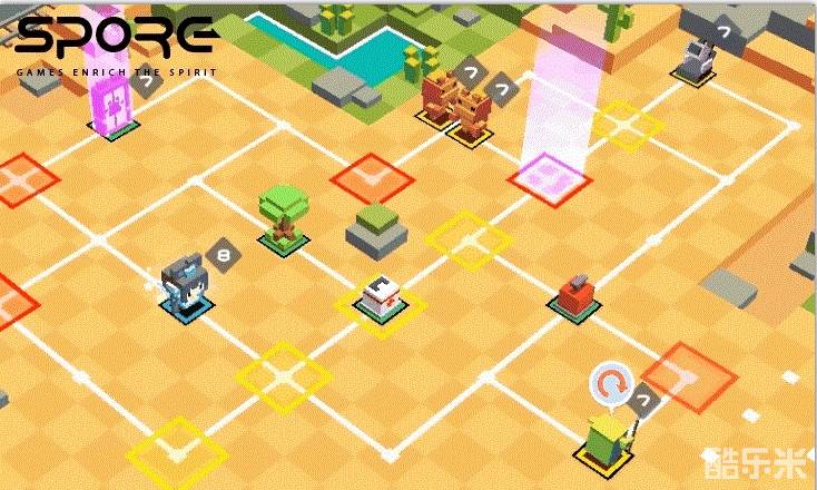 in)中间的黄色方格,在这一瞬间,你进入的黄色方格已经被迫击炮琐定,且迫击炮将在下一回合攻击该方格,注意,第一次它只攻击这一个方格。
