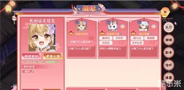征友大厅就是个小红娘,给有着交友意愿的忍者们牵线搭桥,互相关注加好友,互送鲜花撩一撩。还能查看心动对象的详细资料哦~拿下TA从了解TA 开始嘛!