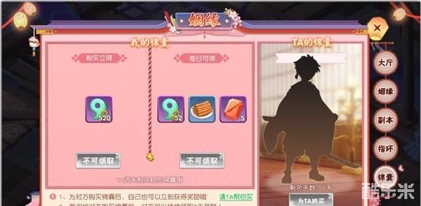 爱侣互动的日常——锦囊送送送。一个锦囊是甜蜜的心意,让TA一周7天,每天都有小惊喜。