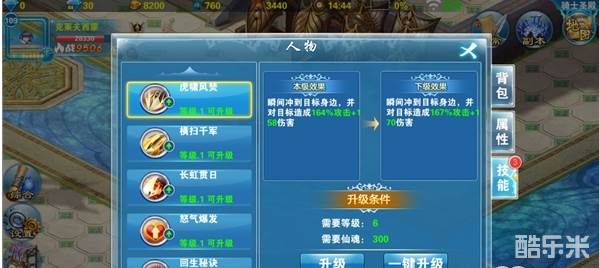 横扫千军:对身边多个目标造成128%+69攻击伤害(随技能等级提升增加攻击),技能冷却时间5秒。建议使用:打怪练级。