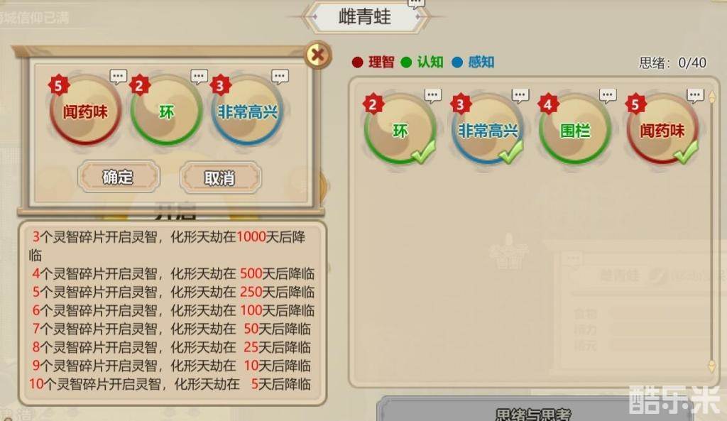 妖族有化形天劫,而体修的修炼是一个比较漫长的过程,很难速成,所以不推荐大家用太多的灵智碎片来开启灵智。正常情况下建议选择以6个灵智碎片开启灵智,7个就太冒险了,缺资源的话最好选择5个。
