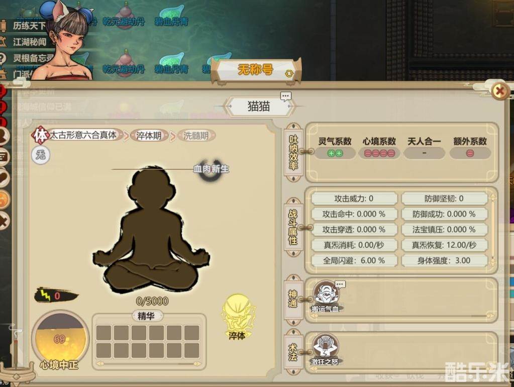 感知建议最优先选择【后悔】,其实机缘对体修来说根本没用,不如牺牲机缘强化其他四维。但是后悔出现率很低,不如收集【非常XX】,《万象通心决》是与百蛮山交易获得的,每次施法需要消耗5年的寿命。
