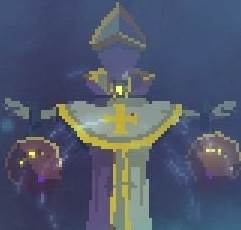 白袍是一个法师选手,可以发射出魔法弹。并且,魔法弹可以无视地形的限制来攻击玩家。然而,这并没有什么卵用。谁让白袍的魔法弹攻击力低下,本身又是个身娇体弱易推到的笑脆皮呢?