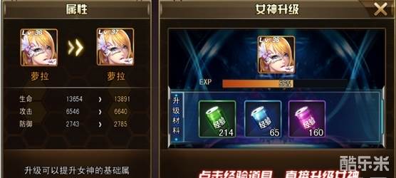 升级,通过喂养经验饮料来提升女神等级