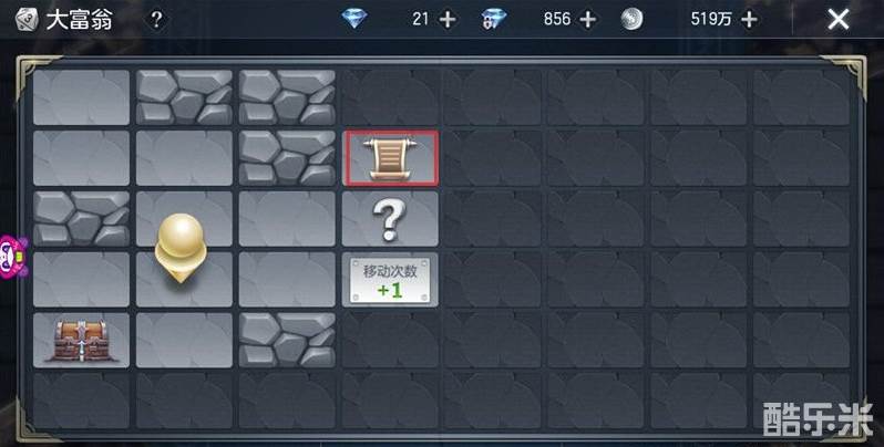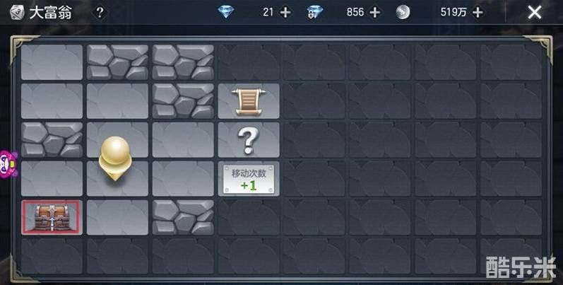 4、随机事件:问号标记的区域可触发随机事件。随机事件有多种可能,包含道具奖励、移动次数增加等。