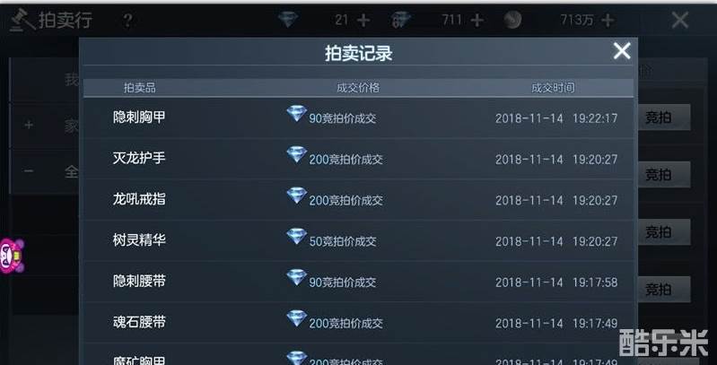 拍卖的记录还有物品信息,以及之前的拍卖历史都可以通过“我的竞拍”和“拍卖纪录”进行查看。可以查阅到道具的流向和最终价值。