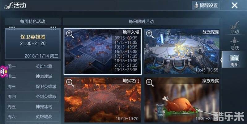 限时活动比较强调团队合作,而且活动奖励也更刺激,更有不确定性。主要包含“BOSS挑战类、PK类、家族活跃类、组队PVE类”的数个活动。海量限时活动大多集中在中午和晚上的休息时间。正是娱乐放松的好时间。从6点到11点,无论哪个玩法,都会让勇士们基情满满。