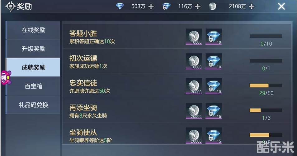 在游戏过程中会不断的解锁一些成就,解锁成就可以获得大量的绑定钻石奖励。是新手勇士前期绑定钻石的主要来源。