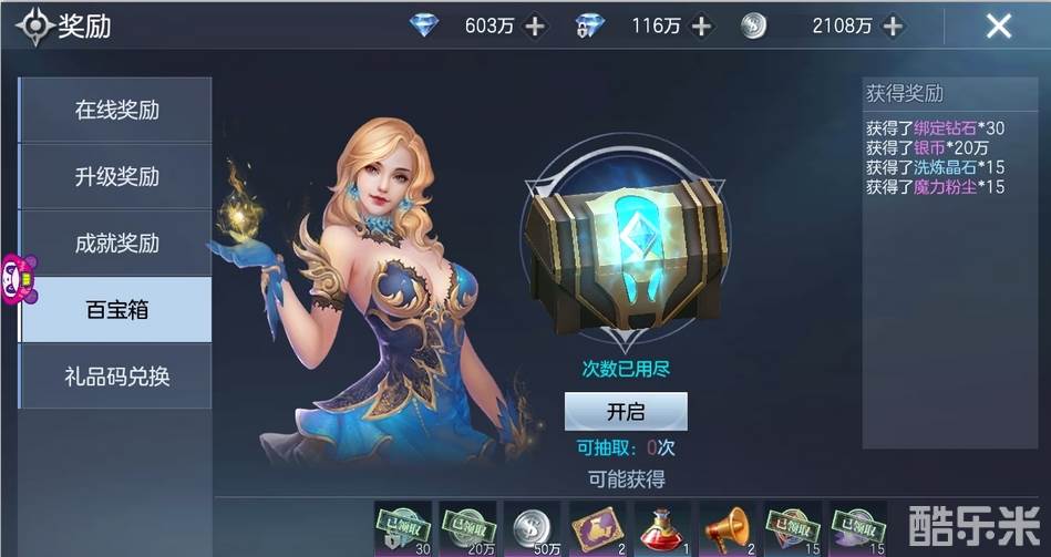 百宝箱中盛放着不可思议的小惊喜。每天有4次开启的机会。可以开出很多珍贵资源,如:多倍经验药、外观卡等等。