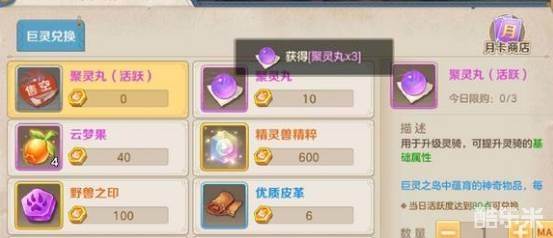 四,点天赋需要很多材料,云梦果,每日任务概率给,黑市有概率刷出,72地图商店可以换,特惠可以买。圣露,竞技和人品商店可以换。精灵兽精粹,目前能在72地图可以换一周一个,不灭羽毛,龙珠,恶魔之魂,一个可以熔炼10精粹,上古概率出。