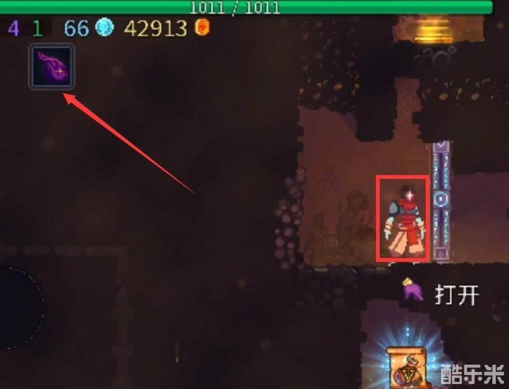 3、接着当飞头触碰到上方的黄色机关后,隐藏区域的门就会打开了。