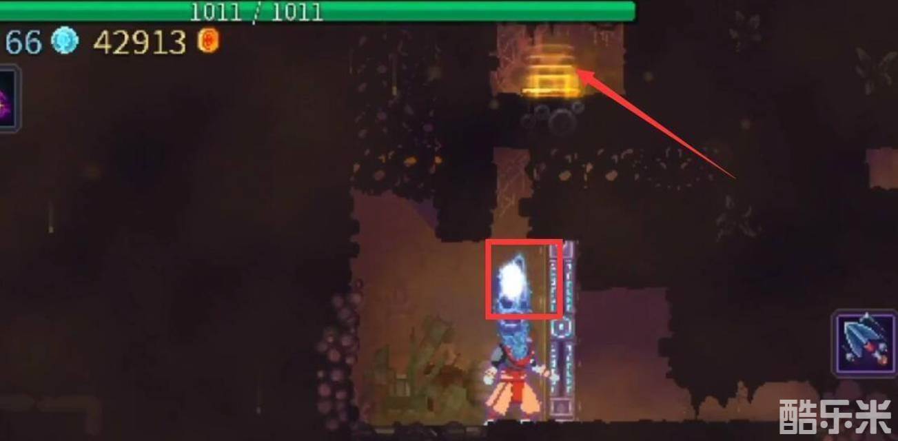 2、使用飞头技能后,我们控制飞头,触碰到上方的黄色机关。