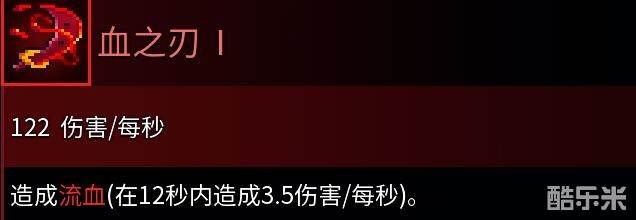 除了刺客匕首之外推荐玩家们用一下血之刃,这个武器虽然没有暴击加成,但是会附带一个流血效果,一共可以叠加五层,叠满之后触发可以带来一次小爆发伤害,效果还是非常不错的,触发之后流血层数会清零,玩家们需要重新叠加。