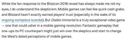 暗黑手游在国际服公测后整体评价相对来说比较中肯,各大主流媒体,诸如Metacritic、ComicBook.com、Android
