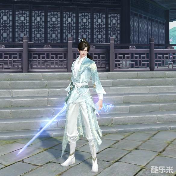 男版【碧玉芙蓉】内着衣袍如冰雪洁白,并绣以银色祥云图纹,外裳则由冰蓝色的上好丝绸织就而成,肩部暗金闪烁犹如星河璀璨,配上雅致莲花纹式的雪白滚边,浑身透露出如荷花一般出淤泥而不染、高洁清雅的气质。腰间由一条湖蓝荷叶状飘带束起,与领口间的银饰相映成趣。足上长靴如履一片深雪之上,并配以铂金色镶边,低调之间又凸显出别样奢华。