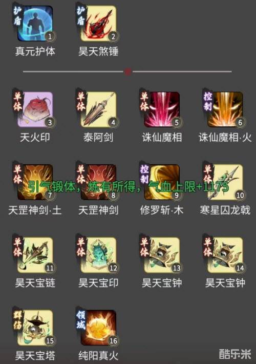 1、这是一套比较万能的搭配,具体可以看图,想要偷懒的仙友可以像这样选择护盾优先,毕竟有天罡神剑净化兜底,不愁解不了灯。而且真元护体开局放可以跟天罡神剑cd错开,应对灯时会更灵活。