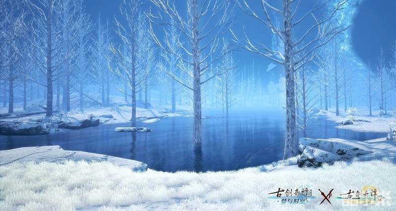 鼎湖,原是《古剑奇谭三》轩辕黄帝长眠之地,这里如梦似幻,树立原丘,雪静湖冰,支离破碎的建筑碎块被巨大的吸力卷入天空……