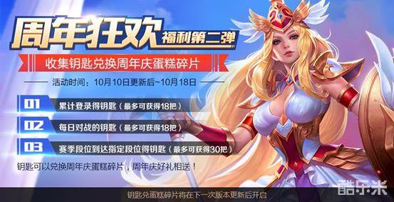 赛季段位到达指定段位,获得冲刺钥匙兑换周年庆蛋糕碎片(蛋糕碎片可以用来兑换周年庆好礼,钥匙兑蛋糕将在下一次版本更新后开启)